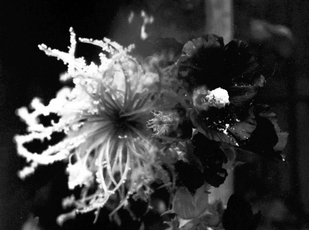 Forget Me Not I have been experimenting with eco-processing, using less toxic ways to develop my black and white 16mm footage for a few years now. I started to grow a developers garden, planting flowers and herbs that I could harvest and use to create plant-based developers. I have also used various weeds and foraged plants around my neighborhood and found outside of town. For another project I was experimenting with using extension tubes to magnify and see deep into things, beyond that which my eyes could resolve. As I was testing this in my developer’s garden I started to see deep into the flowers, often using a hand held camera, so the image would pass in and out of focus. Somehow the extreme close ups, passing in and out of focus reminded me of drawing, the way you look so much more closely at a thing when you are trying to follow its contours with pencil on paper. Then I was thinking about the camera-stylo concept, using the camera like pen, or instead a penci, and maybe not writing essayistic “words” with a camera but instead the camera and filmstock as pencil and paper, seeing things you otherwise don’t see, by closely observing. How meditative and calming. Beyond goal oriented, just looking, time slows, you hear things and see things differently. I think of these flower films as ongoing, a’cycle’ of films. the umbrella title is “forget me not”